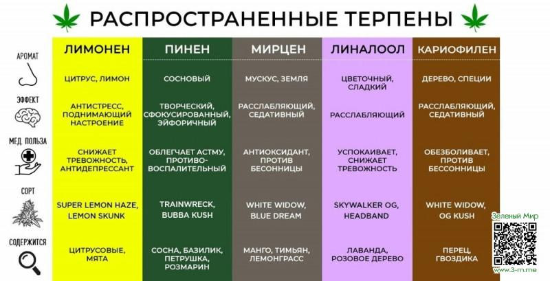 Каждый сорт каннабиса имеет свои особые вкусоароматические качества. Они формируются благодаря наличию в конопле особых ароматических соединений углеводородного класса, известных как терпены