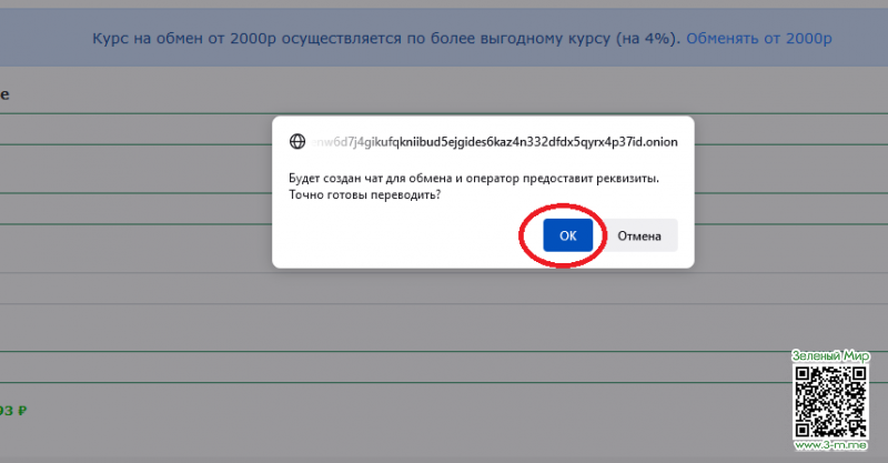 После, в сплывающем окне подтвердить выбор нажав "Ок", создастся чат с обменником и далее следуйте инструкциям в чате.