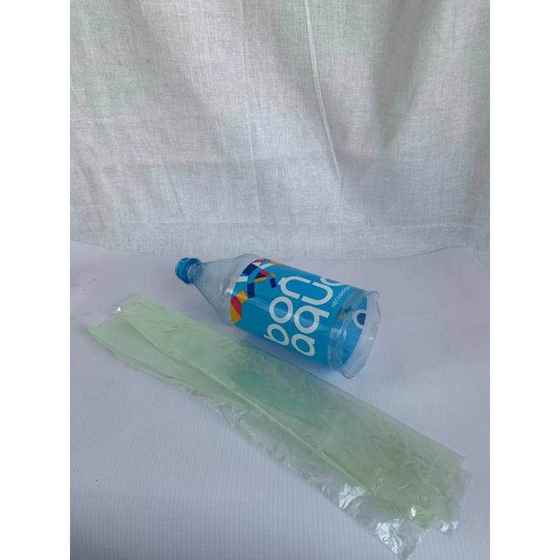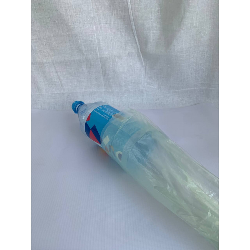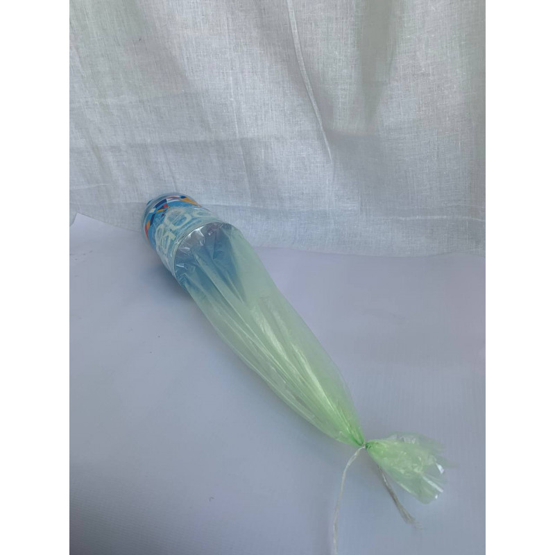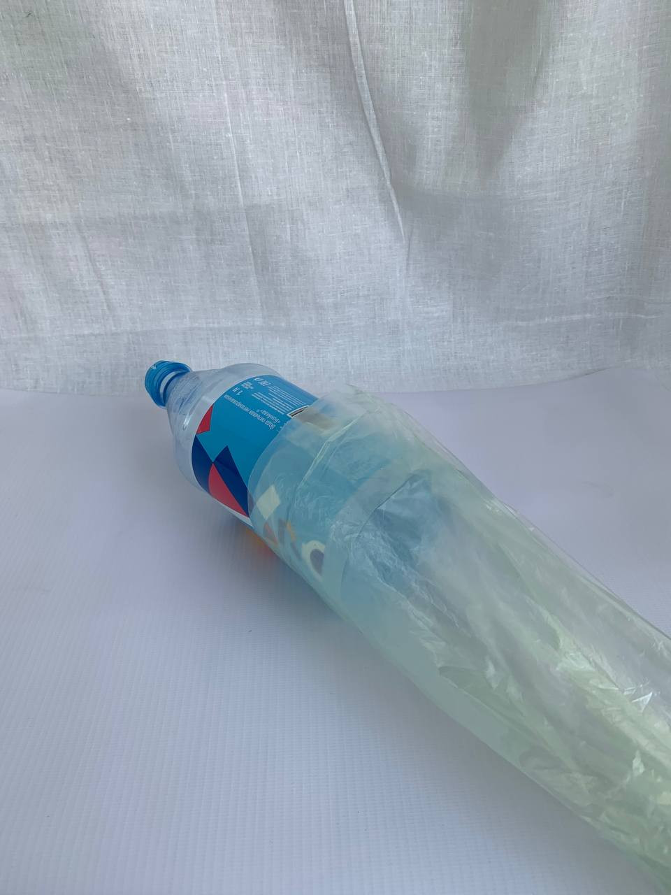 2) Надеваем пакет на бутылку и заварачиваем его вокруг бутылки.