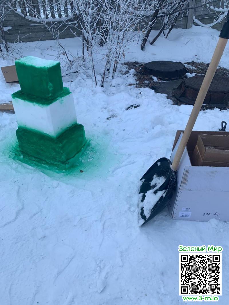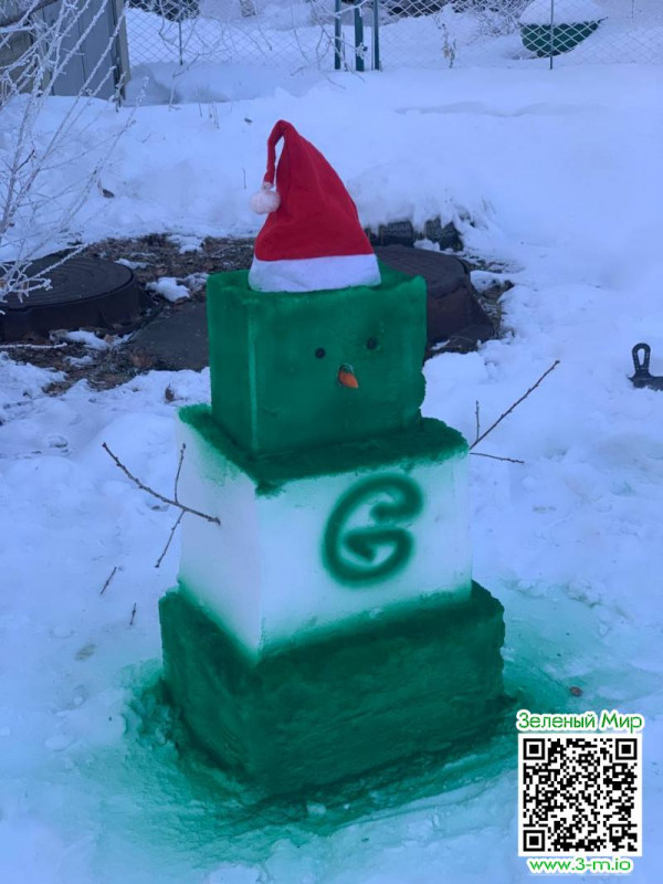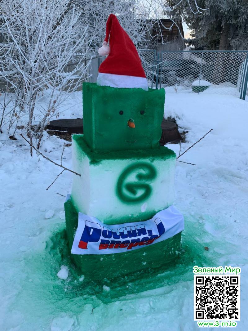 Сам снеговик вышел забавным, а так как снег был сухой, то ничего лучше мы не придумали, это снеговик в стиле майнкрафт!)