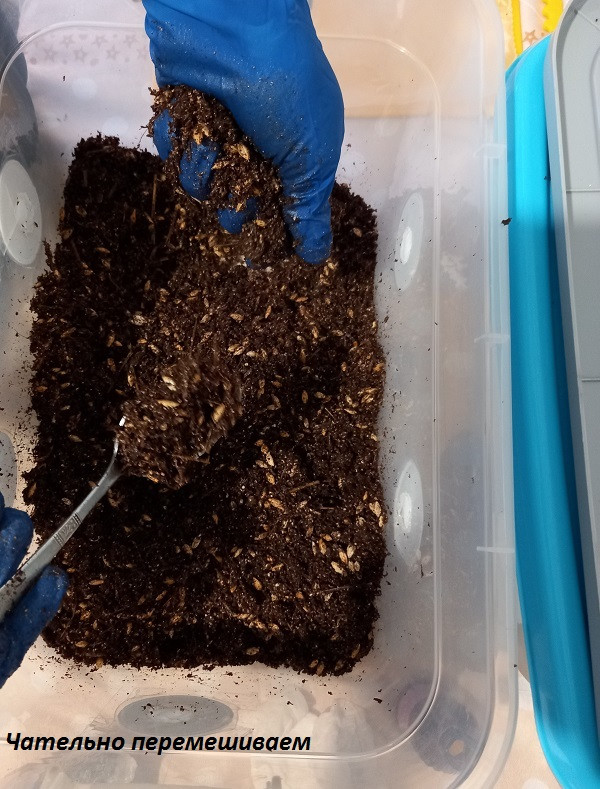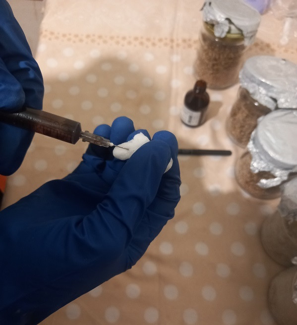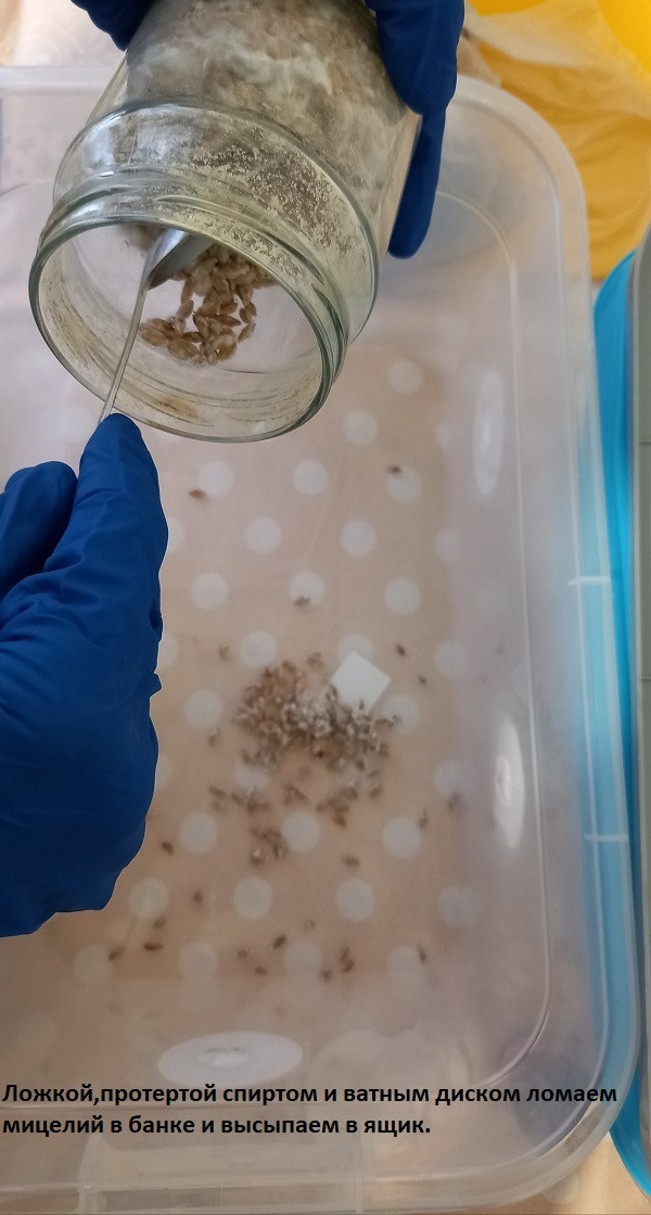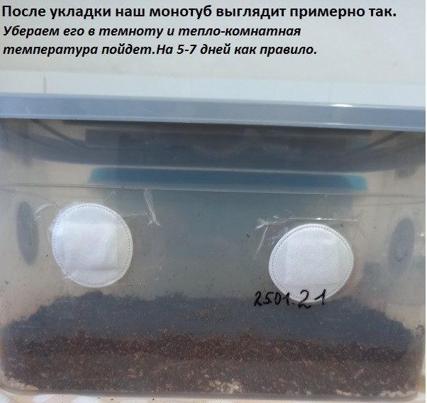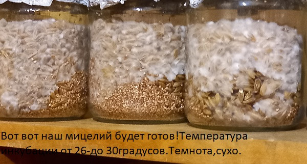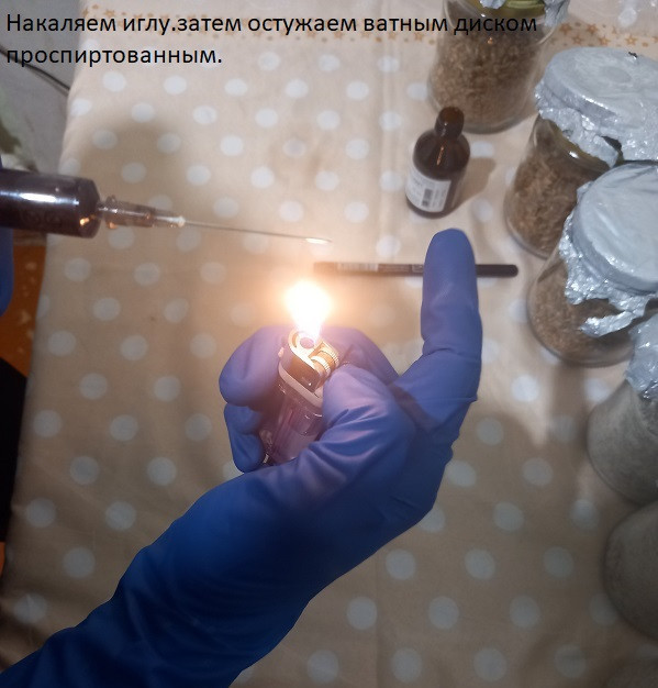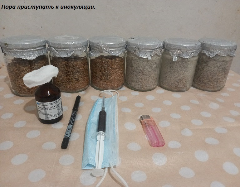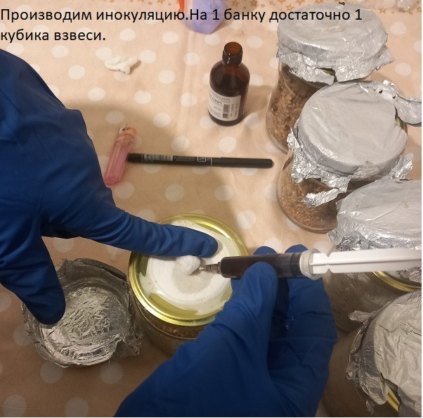 После остывания проводим инокуляцию взвесью субстрат зерновой