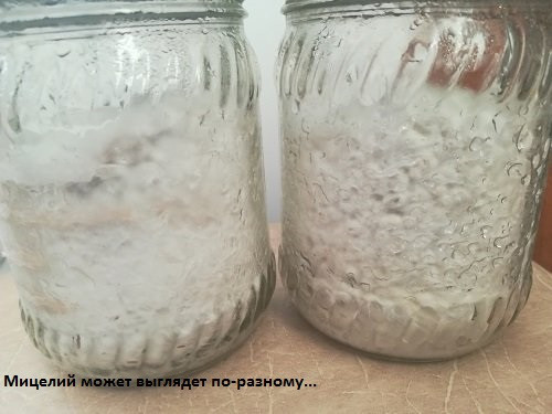 Мицелий бывает по разному выглядит-главное-никаких черных,зеленых и прочих оттенков на зерне