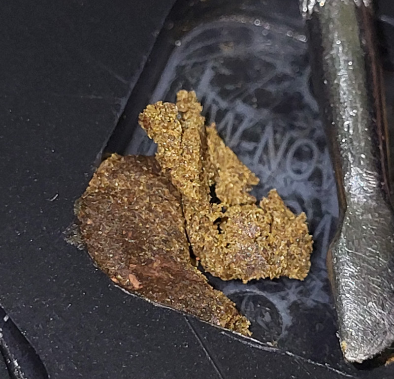 Всем привет. Было мало времени, по этому отзыв только сейчас. Проба была получена перед выходными. Локация оказалась недалекой, время ночь, я собираюсь и иду. По месту все понятно и тихо, ночь же уже. По метке ничего найти не получилось, подумал ну да ладно днем вернусь. По возвращению днем,на месте оказалась много глаз, что бы не привлекать внимания просто осмотрел все визуально, но так и не увидел. В третий раз возвращаюсь этого же дня поздно вечером, жду когда компания парней рассосётся и выдвигаюсь на метку, и сразу мой камень мне бросается в глаза, лежавший в 20см от метке, видимо при закладе откатился а в листве трудно заметить. Вообщем пробник дома, по весам0.33. Запах свеженький не резкий очень приятный. Решил нажечь одну хорошую ляпку, эффект приходит не сразу спустя 2-3минуты плавно начинает убивать, курится легко, горло не дерет. Гаш вроде сатива с присутствием индики. Убивает хорошо, крепко. Эффект длительный и попускает тоже не сразу. Консистенция темноват, рыхловат, лепится хорошо. Данный сорт явно себя зарекомендовал в мои глазах. Спасибо команде данного магазина за предоставленную возможность.