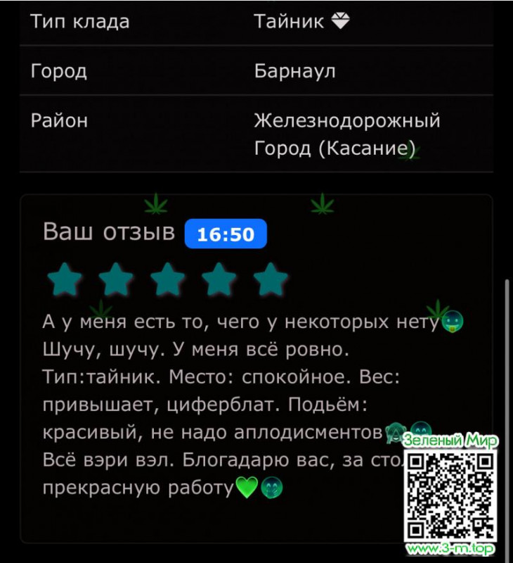 Привет всем! Получил адрес с призом за игру букмекер, падьезд, место выбрано хорошо, съём косание и спокойно вышел) Качество гашиша отличное, пахнет шишками, не жижа как у некоторых, по эффекту не буду рассказывать, все и так знают, прёт в общем хорошо! Спасибо магазину за игру и предоставленный приз!