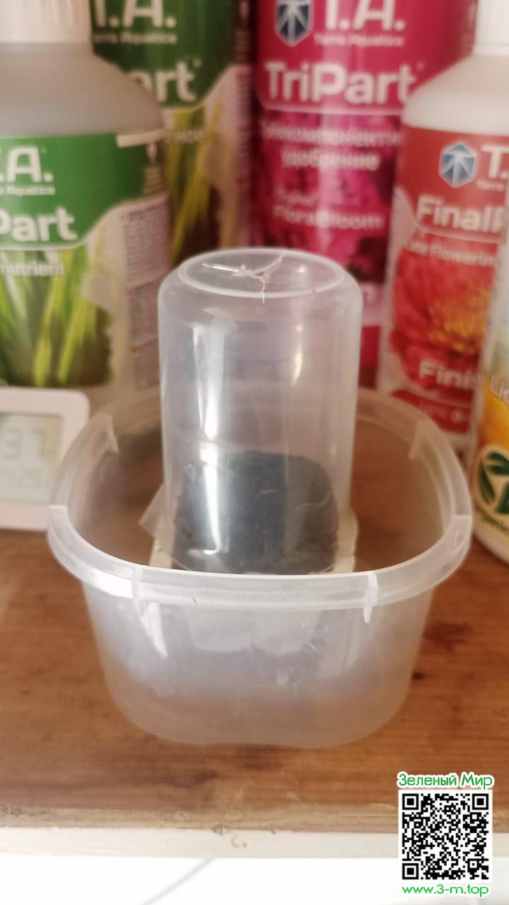 А начну я именно с рождения (пробуждения жизненных функций) - с первого корешка после суток проращивания в ватных дисках. Естественно перед проращиванием семечку необходимо замочить в воде комн темп с двумя каплями перекиси 3% на стопку (30мл) воды на 12-24 часа при температуре в 25-27 градусов по цельсию. Вода пока из магазина (крануха зло). Оптимальная вода, как показали приборы наблюдения и контроля качества - оригинальная питьевая вода из всем известного ДИКСИ - "первым делом" люберецких водоочистительных сооружений, ой, в смысле, артезианской скважины))) (не реклама ниразу) Правда я ахуел, откуда эта вода берется, поработав там полтора месяца. Но не суть... Для питья лучше приобретите осмос. А потребуется он вам не только для питья, но и для растишечки своей любимой! И да, если у вас есть жена и прочая нечисть в доме, то ревность обеспечена!!! К слову о качестве воды вышеупомянутой... Кто страдает проблемами с ЖКТ, то эта водичка вдобавок щелочит. Вам даже не потребуется сода, чтоб сбить изжогу, а вот семечке придётся добавить волшебного окислителя PH - до значения 5.5. Перекись водорода обеспечит дополнительным кислородом, что в свою очередь подтолкнёт прорыв скорлупы, разрыхлит её. В некоторых случаях даже проращивание не требуется, так как в такой насыщенной кислородом воде корешок уже проклёвывается. Если за сутки семечка не утонула в воде (это бывает с применением перекиси), ткните в неё пальцем. Если после пенделя она упала на дно, доставайте и в ватные диски, если нет, выкидывайте и начинайте заново с новой семечкой. Первый шаг получился? Отлично! Писданули у супруги/девушки/мамки/парня и тд пару ватных дисков, один диск поместили в пластиковый пищевой маленький контейнер, смочили слегка его водой, положили семечку, накрыли вторым диском, снова смочили, пульвик в плмощь. И по традиции, глубоко вдохнули и ВЫдохнули из своих прокуренных лёгких углекислый газ с канцерогенами и всей остальной ядовитой отравой, как будто вас проверяет на дороге гражданин начальник на алкоголь, в контейнер! резко закрываем крышечкой, заворачиваем в полотенце и на сутки в теплое тёмное место, так же 25-27 по целочке. У меня ушло сутки на одно и сутки на второе. И главное - никакого света!