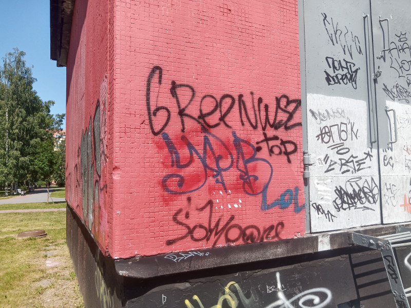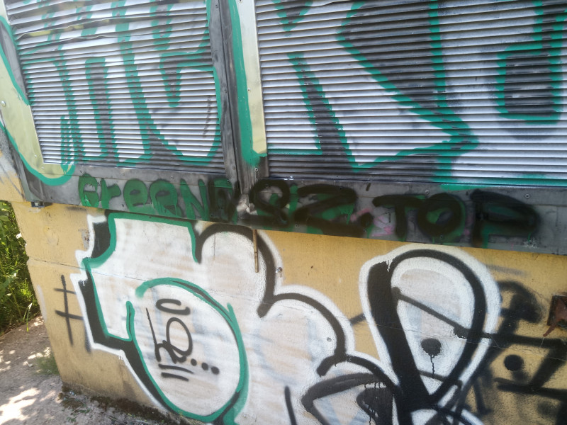 Ещё 5 фото. 2 из них один и тот же рисунок с разных ракурсов (с синим граффити)
