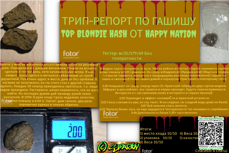 Трип-репорт по гашишу TOP BLONDIE HASH от HAPPY NATION
