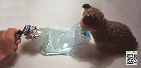 Наполняем бутылку водой, параллельно придерживая дырку пальцем, если все же решили ее ничем не закрывать. Делаем колпак (лучше всего использовать крышку с фольгой), закручиваем, наполняем стафф и готовимся к трюку.