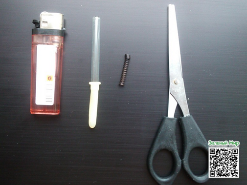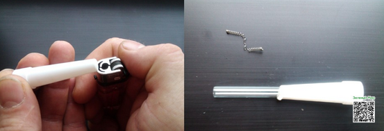 Второй вариант с футляром. Самые проницательные скажут, что футляр – это мундштук и будут чертовски правы. Отрезаем крышку футляра, если она имеется, и с помощью зажигалки равномерно плавим конец. В узкий конец продеваем пипетку, даем конструкции остыть и проверяем на прочность – если пипетка не прокручивается в футляре – все отлично! При желании вставляем пружину в пипетку, загружаем стафф – бах, все получилось!