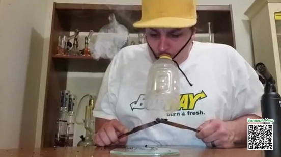 Наконец, поджигаем стафф, с нетерпением отрываем скотч от дырки или просто убираем палец, смотрим увлекательную картину: пока падает «водопад» дым быстро заполняет всю бутылку. Откручиваем колпак и вдыхаем.