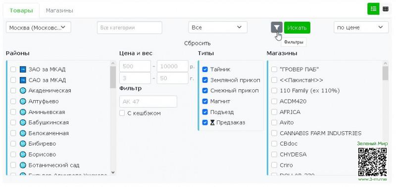 Фильтры - по кнопочке с воронкой перед "Искать" :)
