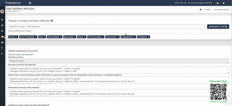 Для демонстрации "багов" был получен доступ к админкам магазинов и обменников, кладов и баннеров площадки.