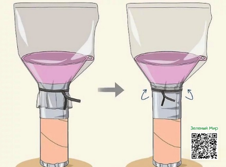 Оберните пакет для запекания вокруг воронки и закрепите его проволокой или резинкой. Для лучшей герметичности загните края пакета поверх завязок и снова закрепите. Главное, чтобы пакет плотно прилегал к воронке.