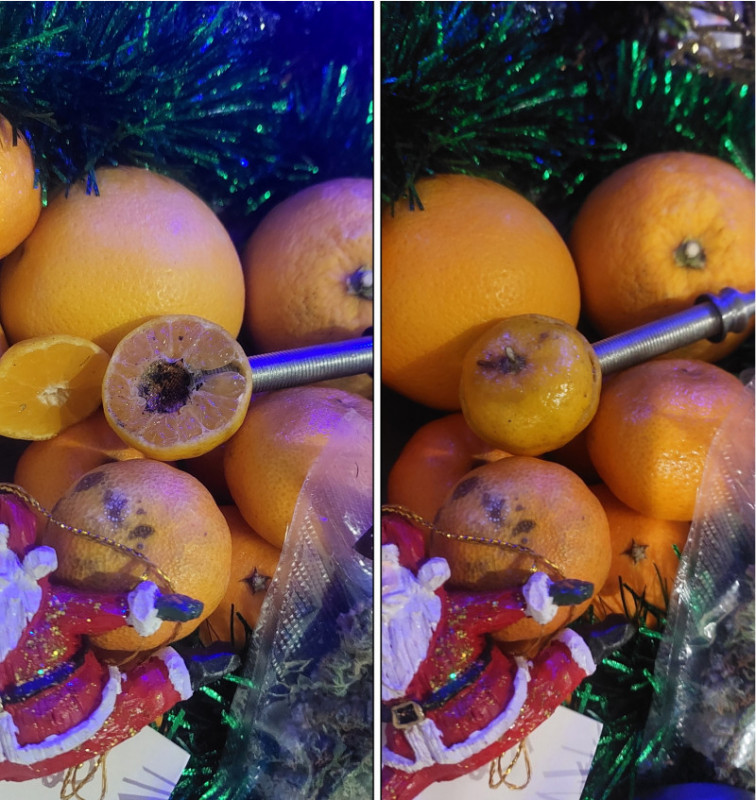 Представляю свою новогоднюю экспозицию и самоделку на конкурс: "Новогодний мандариновый покур". Девайс сделан из живого плода мандарина, что дает тонкие нотки цитрусовых во время приема. Девайс более чем юзабельный, что подтверждается последним фото. Делается из подручных средств, что может стать кому-то полезной информацией, когда есть, что, но нечем курить. Из любого плода, трубочки и сетки или фольги при помощи ножа можно сделать очень даже функционирующий девайс и не обязательно одноразовый. Сам плод - расходник, которого хватает, чтобы покурить довольно большой компанией на один, максимум два вечера. У меня просто он никогда не успевал сгнить или высохнуть до утилизации по внешним причинам) Трубка - зависит от материала, у меня вечная трубочка из нержавейки с резьбой вдоль всего тела, что позволяет ее "вкрутить" в любой плод без проблем. Всех с Наступающим Новым Годом! Всех обнял-приподнял!