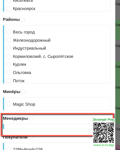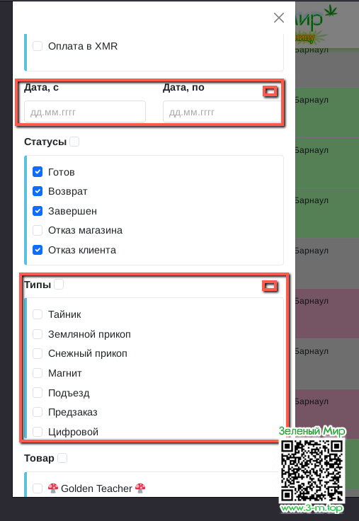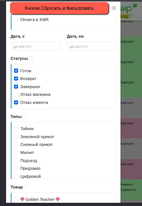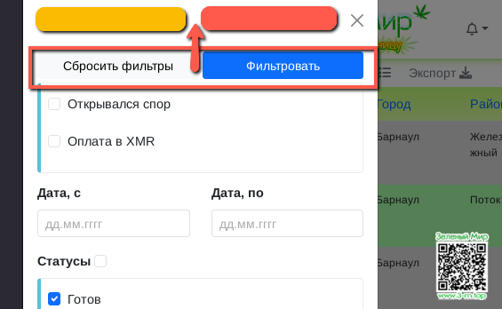 Кнопки фильтрации.