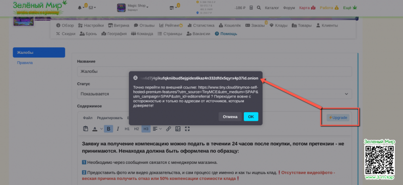 При редактировании страниц магазине, висит сообщение о необходимости обновить плагин для WYSIWYG editor