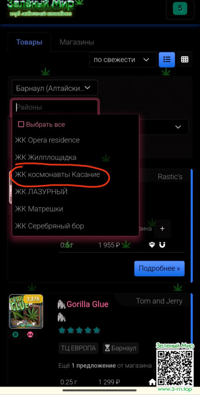 4) Ради эксперимента возвращаюсь в шаг 3, вместо "Telegram" вбиваю "White Widow", показывает "Товары 19 результатов" (скрин 3), кликаю на эту строчку
