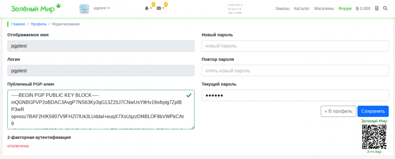 Из "Экспорт" (фото 1) вам нужно скопировать ваш публичный ключ и вставить в ваш "Профиль: /user/edit" (фото 2)