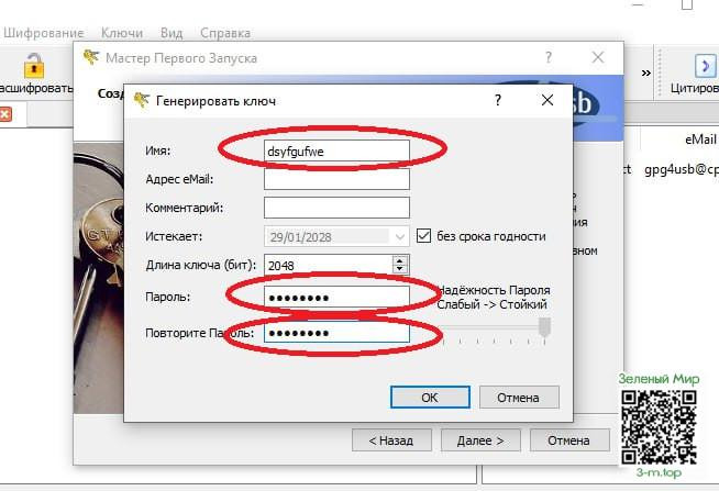 2) Создать личную пару ключей OpenPGP