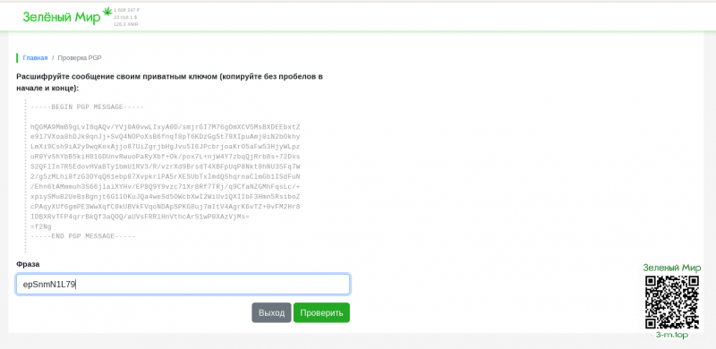 Если всё сделали верно, то после нажатия на "РАСШИФРОВАТЬ" программа автоматически подберёт из всех существующих в ней ключей подходящий, предложит ввести пароль, если вы указывали его в настройках при его создании (есть там такая возможность) и вуаля. Зашифрованный текст преобразуется в сообщение, которое необходимо скопировать и вставить в окно, на сайт, где вы пытаетесь авторизоваться.