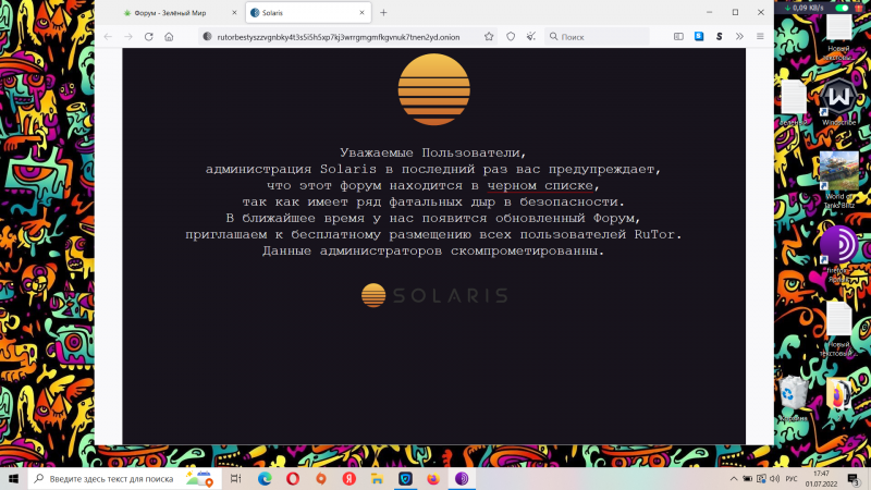 сегодня зашел на рутор , вроде побыл я там,обновляю страницу и меня приглашают в сраный солярис даже там не регистрировался ,с какого подобия место РУТОРА СОЛЯРИС я не понимаю может я кретин последний кретин в этом мире?