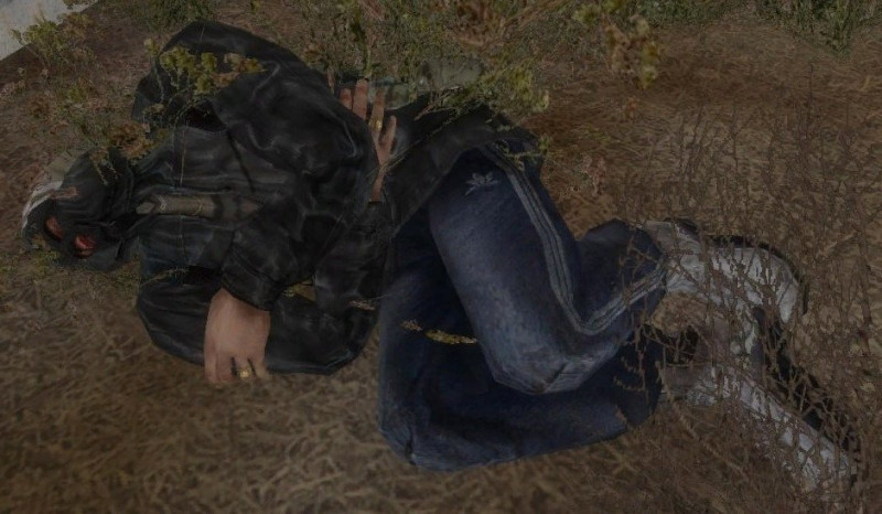 Это одна из моделек нпс в с.т.а.л.к.е.р.е, в позе: -"кореш дай аптечку". Типа помощи просит ага.