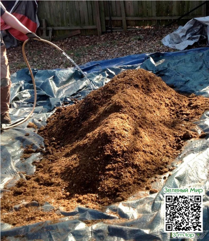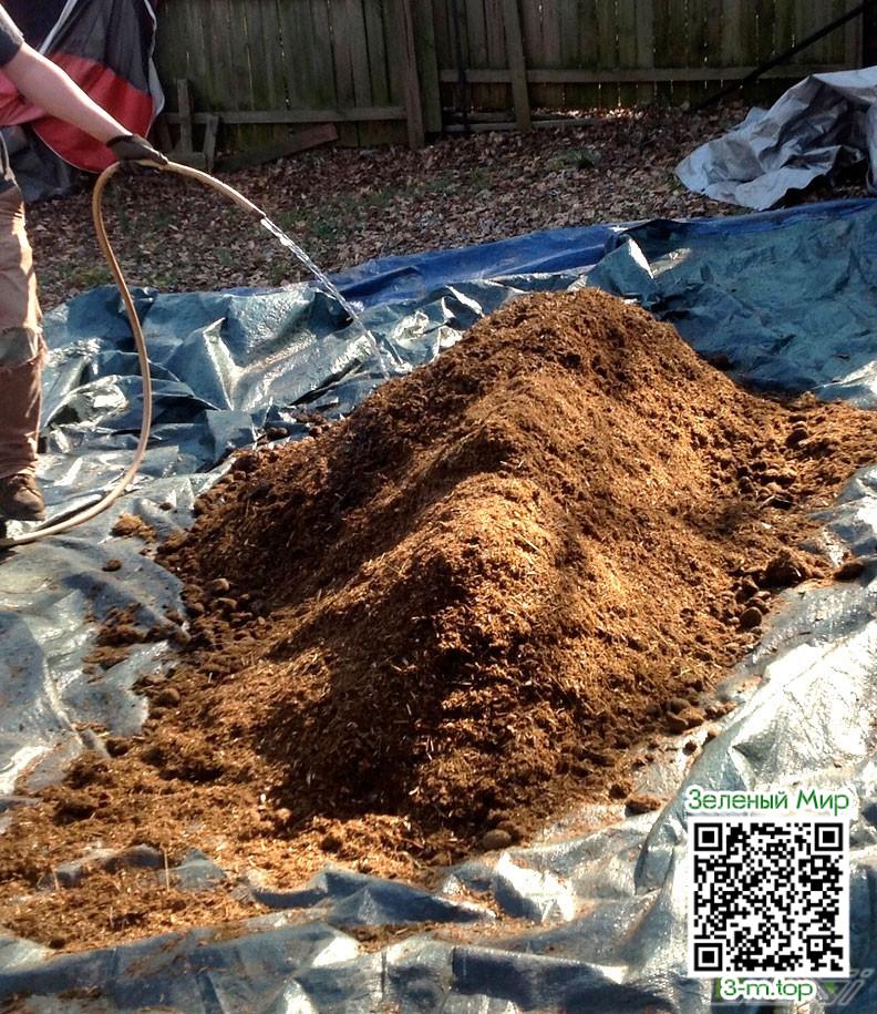 3. Регулярно поливайте смесь, т.к в сухом грунте все процессы компостирования прекращаются. Субстрат должен быть влажным, но не мокрым, не забывайте прикрывать смесь брезентом.