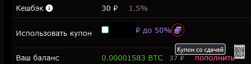 При оформлении моментального клада, нужно выбрать "вариант оплаты" и поставить галочку в строке "купон" (см. скрин)
