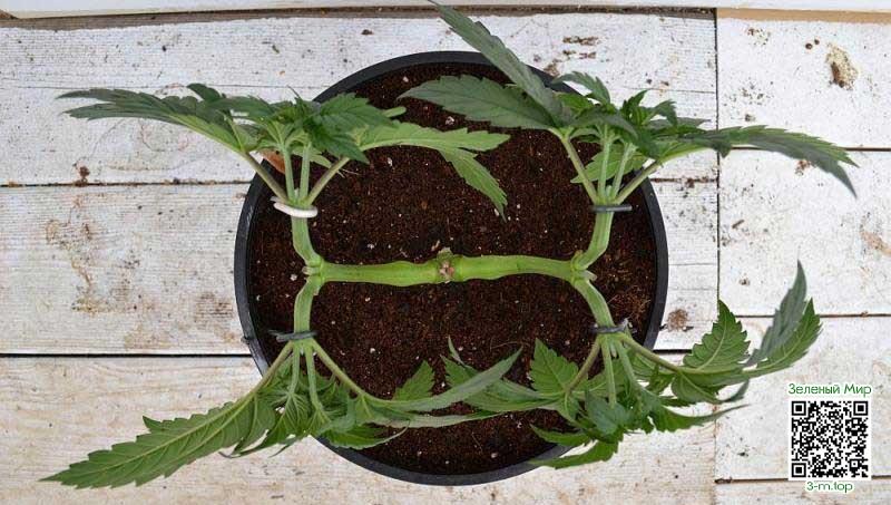 Результативный способ получения контроля над растением в ограниченном пространстве. Также предоставляющий аутдорщикам возможность контролировать размер и форму их растений, с целью получения большего количества крупных соцветий.